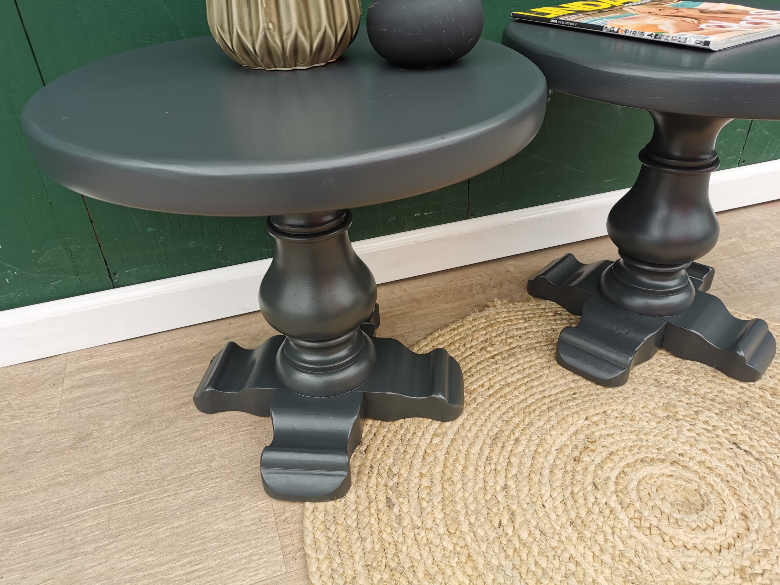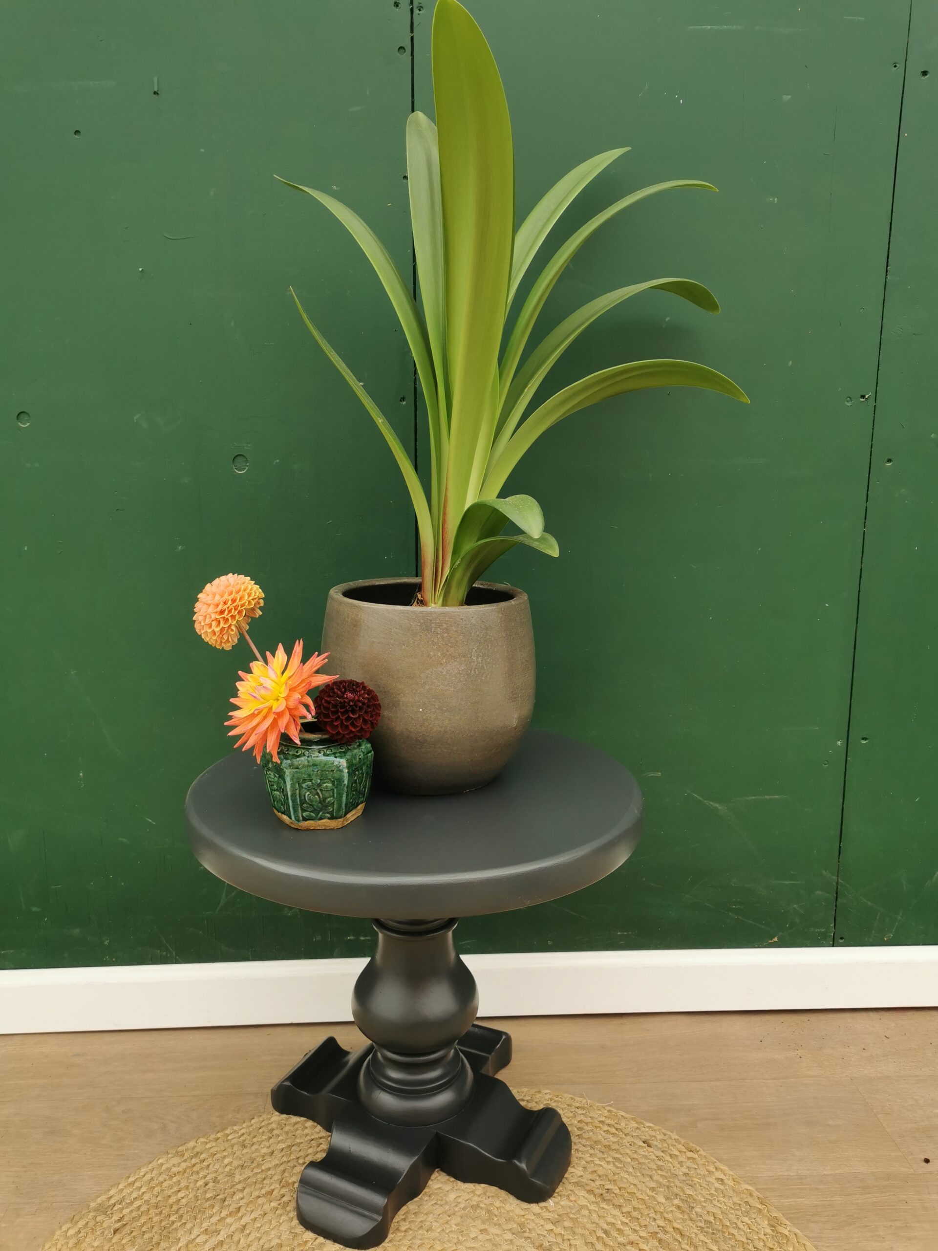 Set bijzettafels in Zwartgrijs Sikkens. Mooi als stoere set in woonkamer of verdeeld in de hal. De tafels zijn van zware kwaliteit en kunnen een mooie grote plantenpot dragen. 🖤